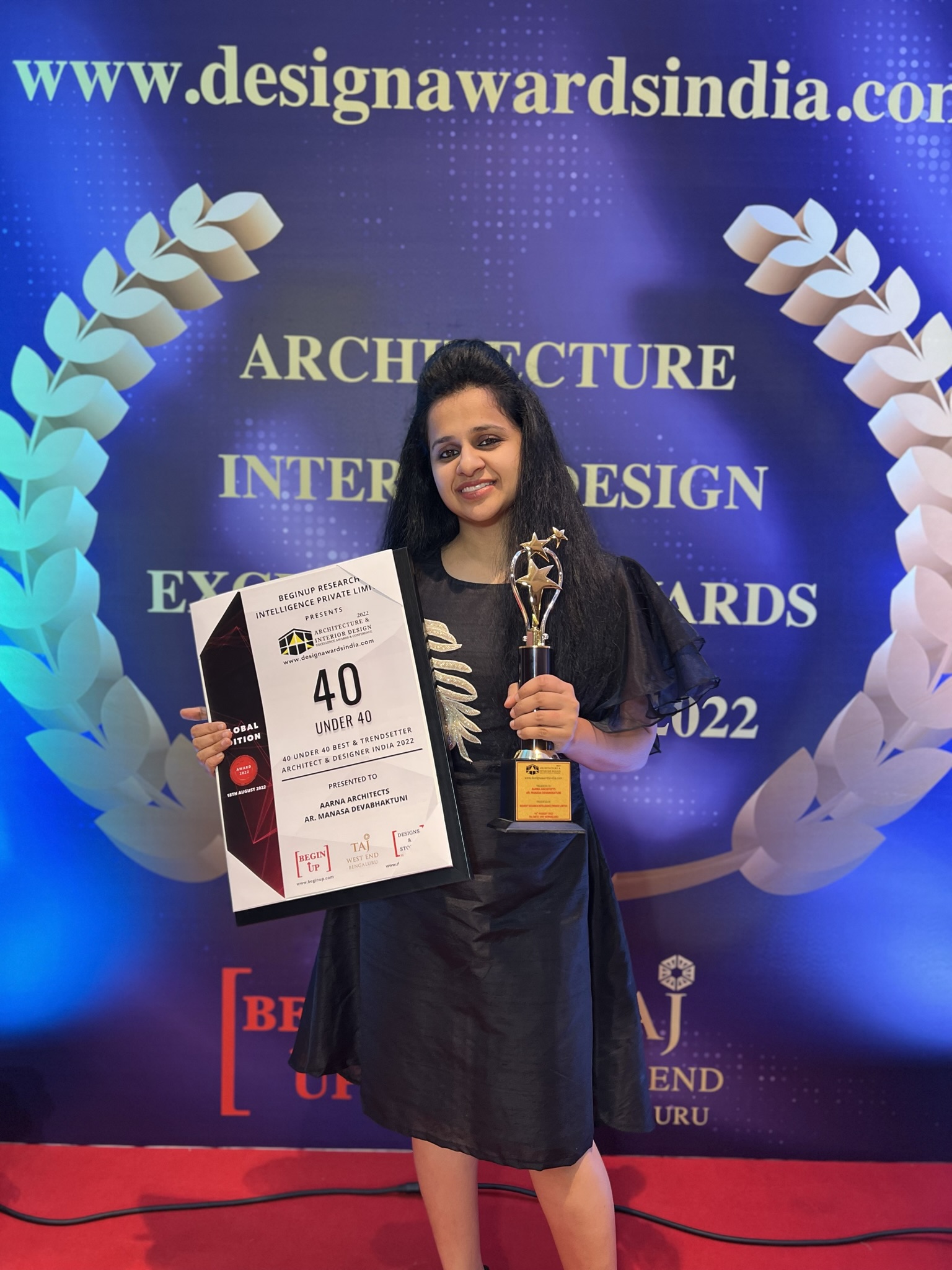 40 under 40 best and trendsetter Architect and Designer India. - 2022 – “Manasa Devabhaktuni” – ELDROK – India Architecture Awards 2022