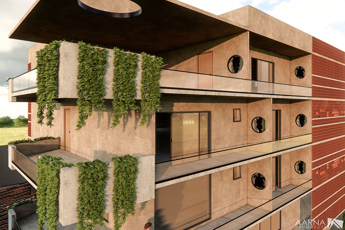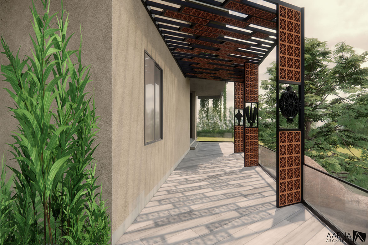 To create a harmonic balance between the nature/plantation where the built form is set and the design/demands of modern living while blending sustainability and contemporary utility through green building technologies and alternate energy systems while addressing the present and future needs of all stakeholders, with compliance to essentials in Vastu.