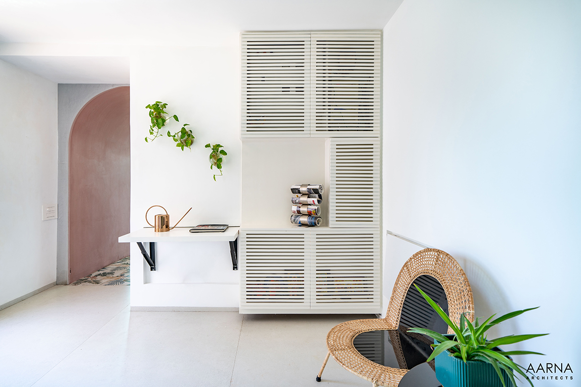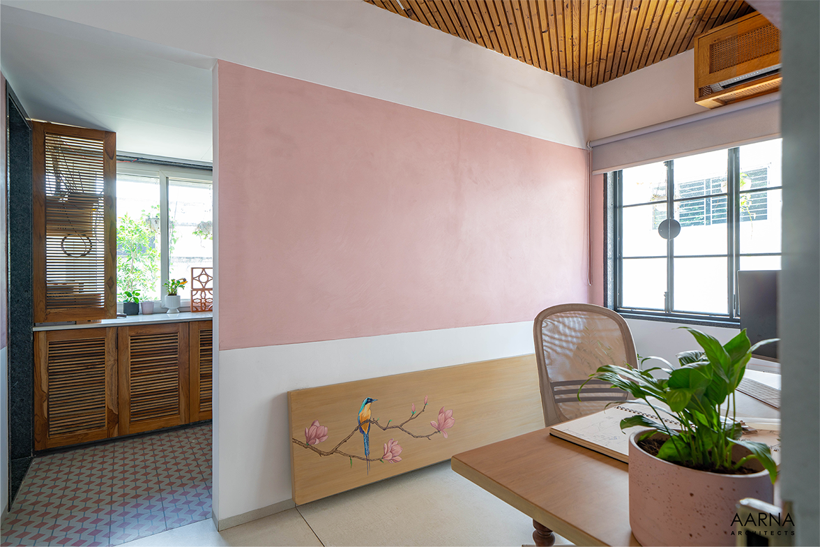 “Small is beautiful ” are the words that rang in our minds when we set out to design 700 square feet of a rectangular train bogie-like space to host our Atelier. This space is carved out on the west side of a larger floor slab on the 1st floor of a commercial building in Hyderabad.